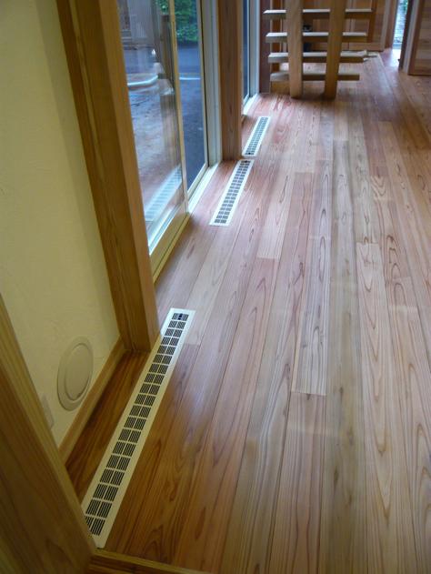 うな夏涼しくて冬暖かい地中の温度と同じ温度を保つようになります。そうして出来た快適な気温の一階床下の空気を、床下換気口(写真)