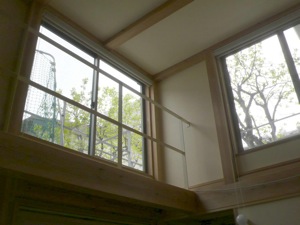 実は井戸水利用をしたお宅と柿の木の坪庭をつくったお宅は同じです。エアコンに頼ることなく、