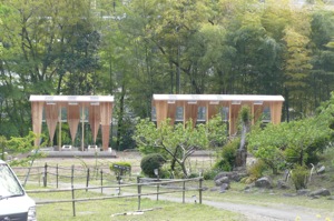 そのような状況のため、被災地での実現は難しいままなのですが、それよりも先に、あきる野市にある生活クラブ協同村に、ドームの一部を屋根とした施設をつくる運びとなりました。協同村は新たに生まれ変わるべく、様々なプラが進んでいます。そのひとつが、キャンプ場を原っぱゾーンとして整備する計画で、お庭を専門とされる提携建築士の横山裕幸さんがランドスケープを担当され、我々テイクスが炊事場や集いのスペースなど建物の計画を担当しています。竹林沿いに配置し、広場とつながりながら、竹林越しにを川を臨めることができる場を考えました。キャンプサイトの木立の中に、炊事場や集いのスペースを、第二の木陰を生み出すようなイメージで、提案しています。シンクのある作業台が並ぶ水場の「水の木陰(こかげ)」、炉が並ぶ「火の木陰(こかげ)」はすでに完成しました。ちょっとした休憩のできる「集いの木陰(こかげ)」は来年度以降に誕生する予定でが、この3棟が竹林沿いに並び、川とキャンプ広場をモダンな木陰がやわらかくつないでいくことになります。来月の原稿で、完成した報告をさせていただきたいと思います。