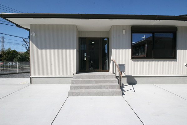 深い庇を持つエントランス。