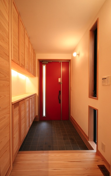 飾り棚を照らす照明器具が、吊戸棚に仕込まれている。