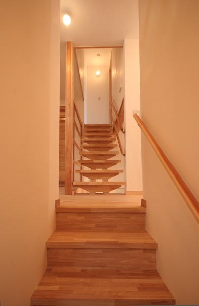 力桁で支えた、宙に浮いたような軽やかな階段。