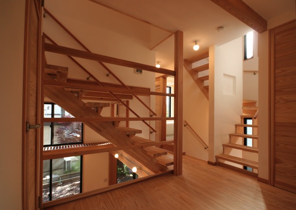 洋室3へと上っていく階段と、屋上へ出る為のペントハウスに上っていく階段。