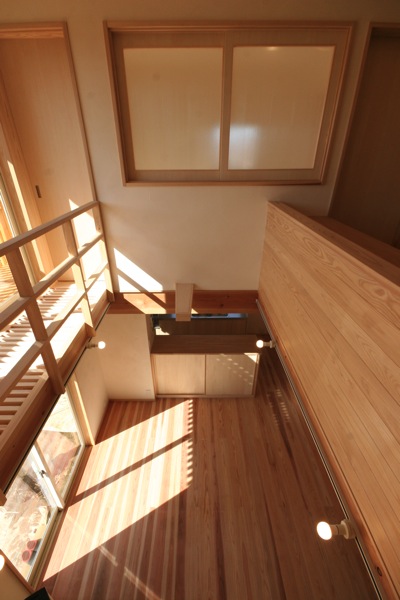子供室から見たリビング・ダイニング上部の吹抜け空間。