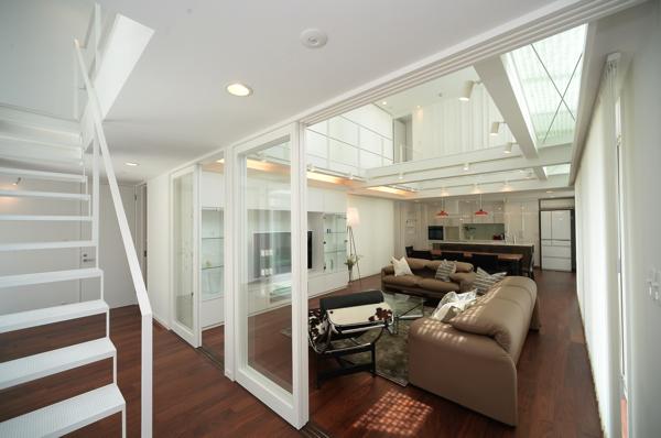 LDと通路の間には、大きなガラスを嵌めた白い框の引き違い戸。