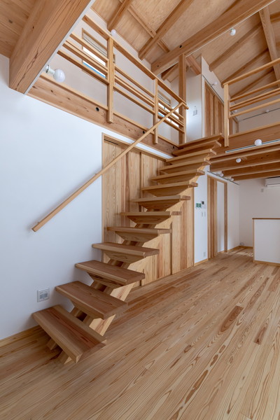 吹抜けに設けられたシンプルな階段。