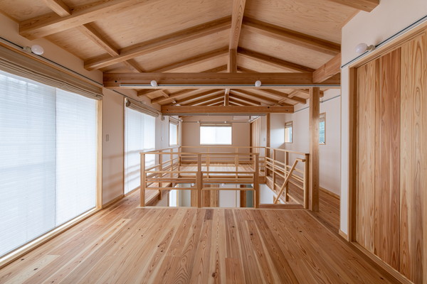 構造材をあらわしにした天井。