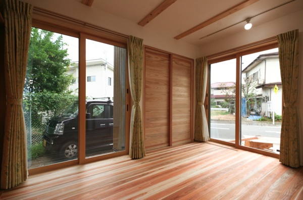東面と南面に掃き出し窓のある、明るい居室。