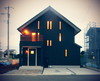 ヨコ張りのガルバリウム鋼板の住宅。