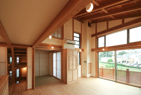 天井に高さの違いを設けることで、LDの開放感を、