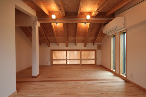 屋根の構造をスッキリさせることで、天井高を有効利用している。