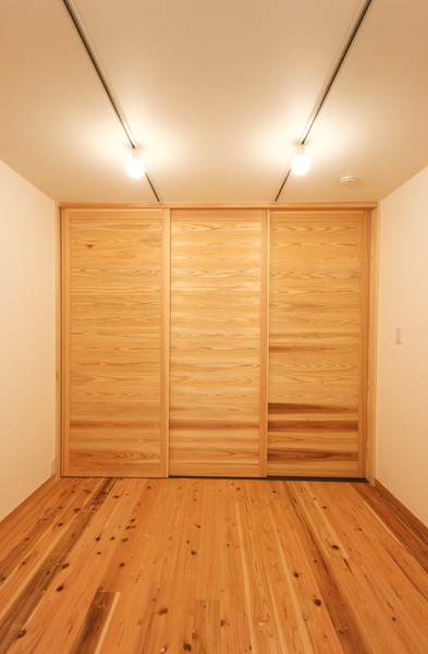 寝室と連続するウォークインクロゼットに繋がる3枚引戸。