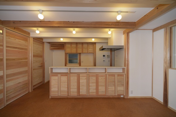 正面のカウンターは、造作によるもの。