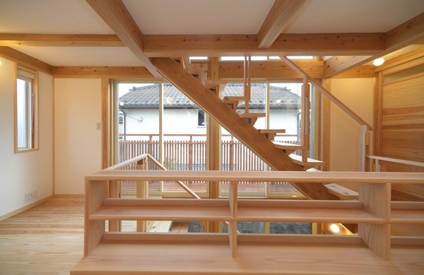 手摺を兼ねている本棚。