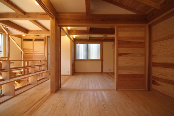 建具を開くと、階段室と寝室Aと一体の空間となる。