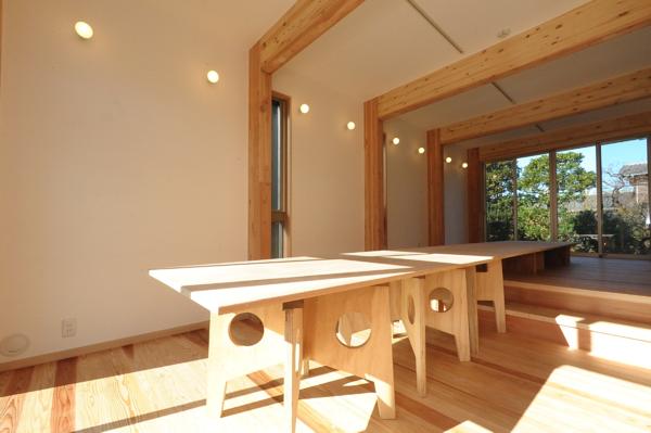 ダイニングテーブルは、ラワン合板を組み合わせて製作した、特性のテーブル。