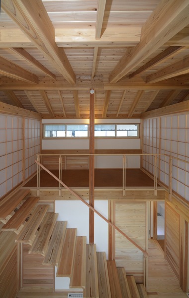 中央の柱は、土台から棟木までの通し柱。