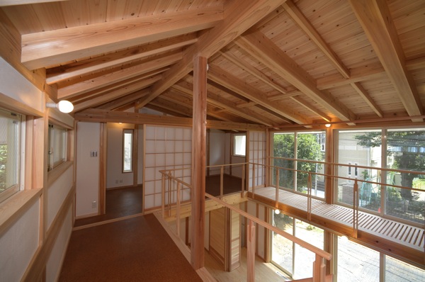 吹抜けを挟んで向かい側のキャットウォークは、すのこ状になっている。