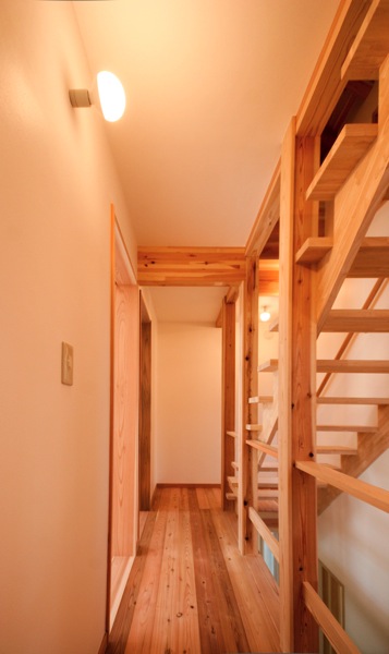 床は無垢の杉材、壁は漆喰塗り、天井はペンキ塗装による仕上げとしている。