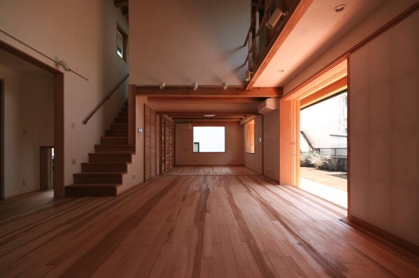 床は桂材、壁は漆喰、天井は杉の縁甲板で仕上げている。