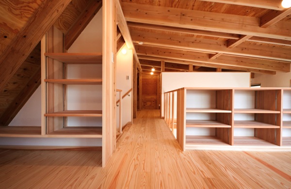 本棚等、収納の為の棚を十分に用意しいる。