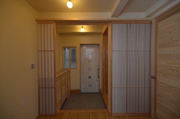 冬場、玄関部分の冷気を防ぐように、障子を設けている。