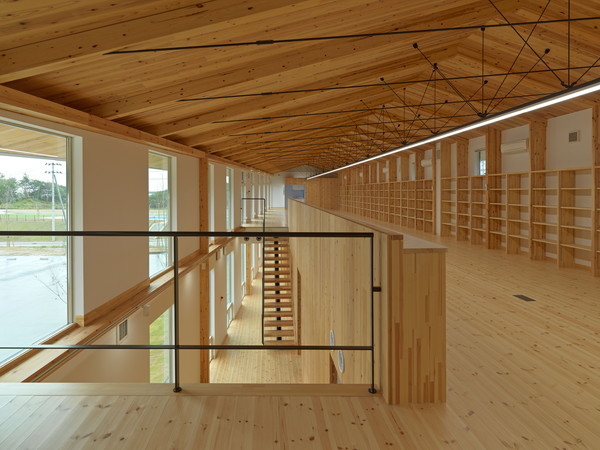 屋根面の構造と断熱性を兼ねたCLTをそのまま現した天井と、
