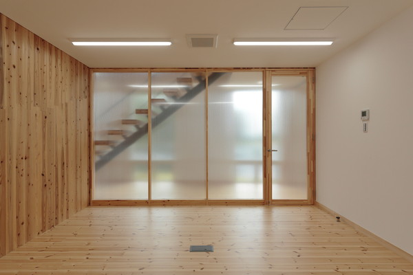 廊下とは半透明のポリカーボネートにより柔らかく仕切られている。