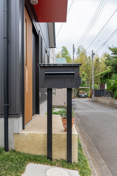 建物の形を模した、オリジナルの郵便受。