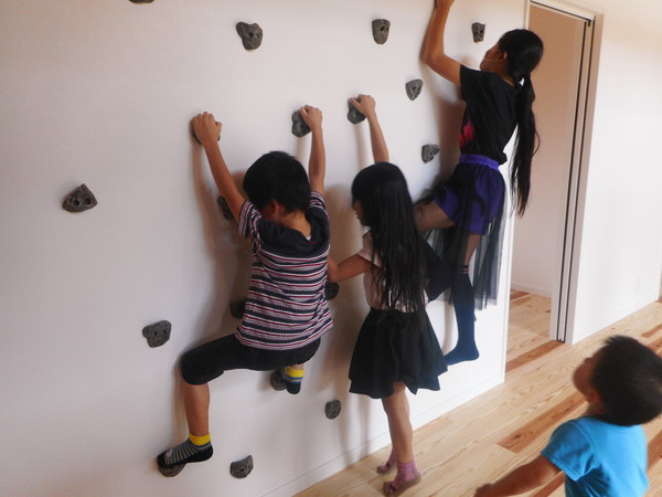 LDに設けたクライミングウォールで遊ぶ子供達。